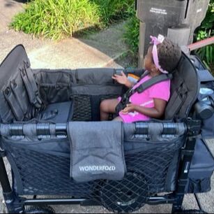 As a single foster mom to multiple young children with medical needs, Cortney needed a way to transport multiple young kids at once, sharing that it’s often difficult to take the whole gang out on her own, especially since her soon-to-be-adopted foster daughter has difficulty walking long distances. It was our honor to provide Cortney and her family a multi-seat wagon that allows her to keep everyone safe while stockpiling snacks and supplies on their adventures Little Miss P loves going for wagon rides everyday when she gets home from daycare!